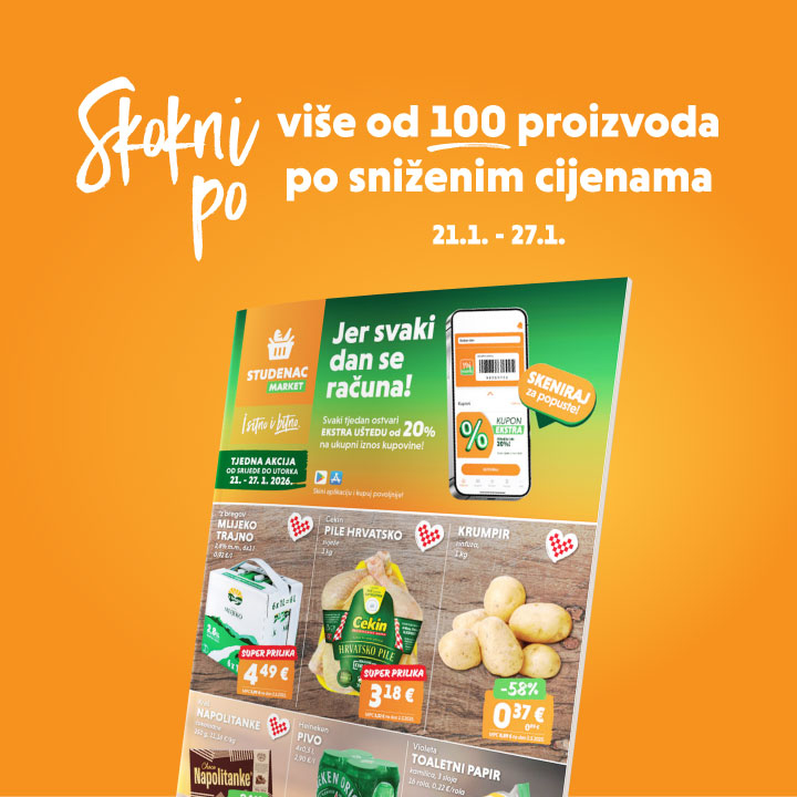 Otkrij Studenac pogodnosti uz našu mobilnu aplikaciju. Uštedi uz kupone, napravi listu koja će pomoći pri organizaciji kupovine u Studencu i sakupljaj bodove prilikom svake kupovine za dodatne uštede! Preuzmite aplikaciju iOS Android