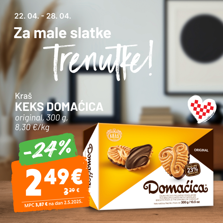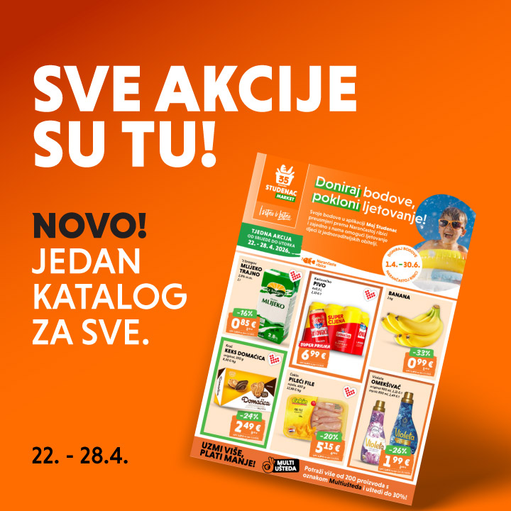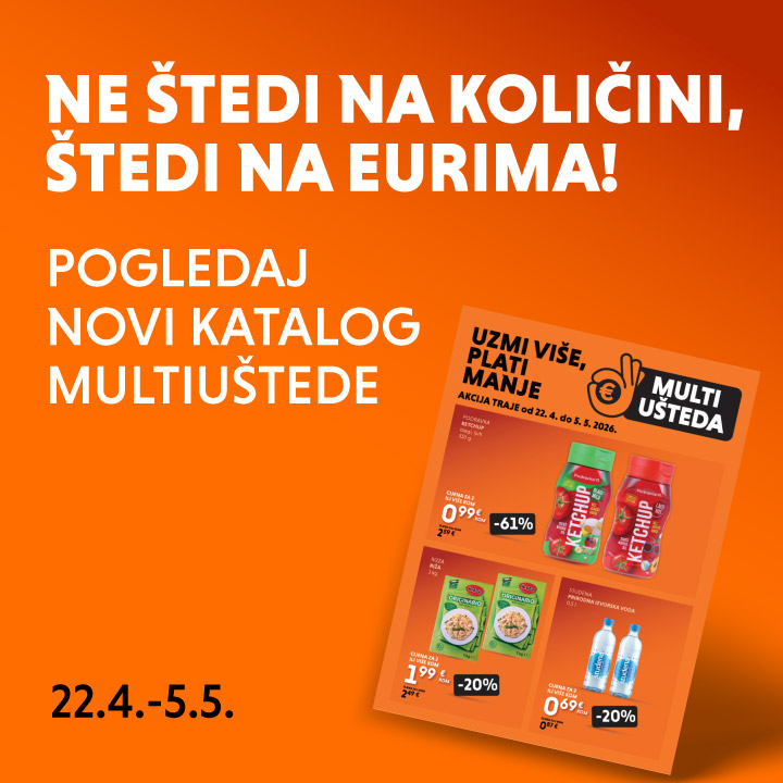Čokolada Milka -52% 2,99 € 6,29 € alpsko mlijeko, 250 g, 11,96 €/kg Vrijedi od 15.04.2026. do 21.04.2026. MPC 5,99 € na dan 23.05.2025.